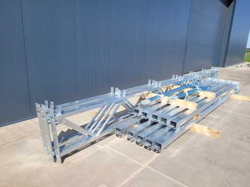 Gegalvaniseerd staal; Bovenprofiel 50x50x2, Onderprofiel 50x50x2, Kruisverstevigingen 30x30x2, Hoog 500, Postbusprofiel 100x100x4 Hoog 3330 en 4170, Dakverstevigingen, Constructieklasse EXC2, EN-1090-2 standaard, Oppervlaktebescherming Warmzink PN-EN ISO 1461, exclusief Z-profiel voor dak en muren