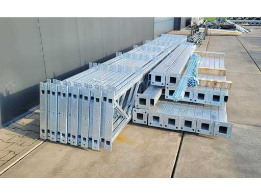 Gegalvaniseerd staal; Topprofiel 50x50x2, onderste profiel 50x50x2, kruisverstevigingen 30x30x2, hoog 500, postbusprofiel 100x100x4 hoog 4170 en 5015, daksteunen, constructieklasse EXC2, EN-1090-2 standaard, oppervlaktebescherming hot-dip zink PN-EN ISO 1461, exclusief Z-profiel voor dak