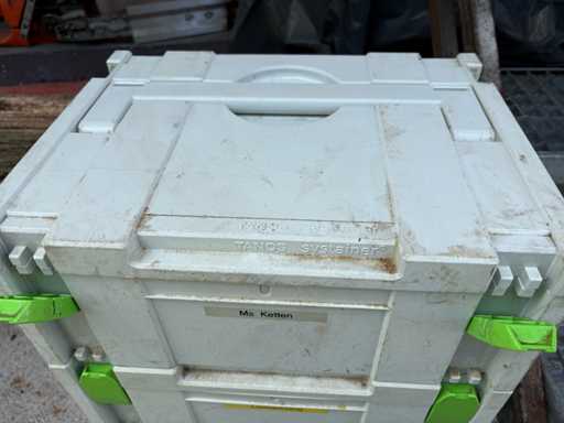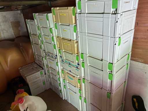 Dit uitgebreide Systainer-systeem bestaat uit 35 modulair stapelbare gereedschapskisten van het merk TANOS (model: systainer® Classic Line), compatibel met Festool en andere fabrikanten.