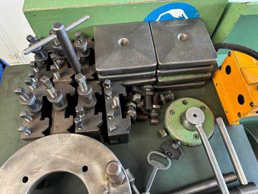 machine geserviced, gecontroleerd op goede werking en geometrie Alles functioneert en is in goede staat compleet met digitale uitlezing, 3- en 4-klauwplaat, brillen en snelwisselhouder
