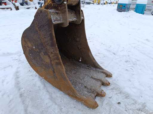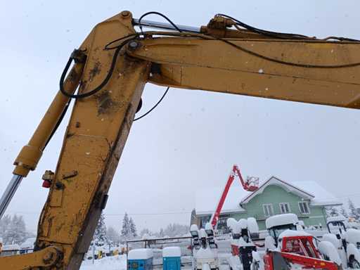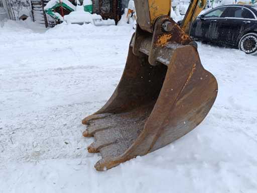 Uitrusting: Voorste bulldozerblad, achterste stabilisatoren, monoboom, graafbak, hulphydrauliek, gesloten cabine