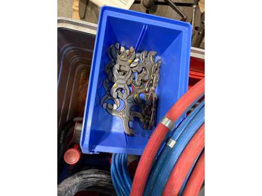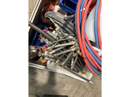 Verscheidenheid aan hydraulische slangen met koppelingen, sommige ongebruikt