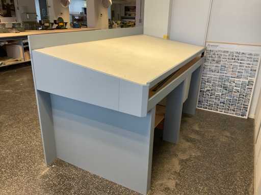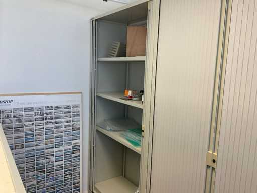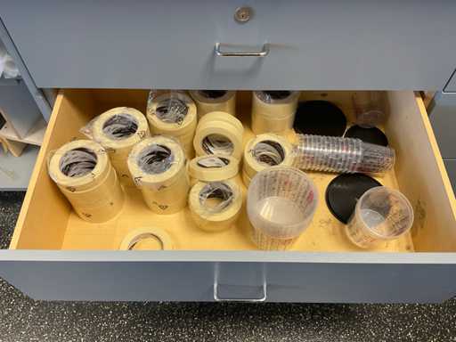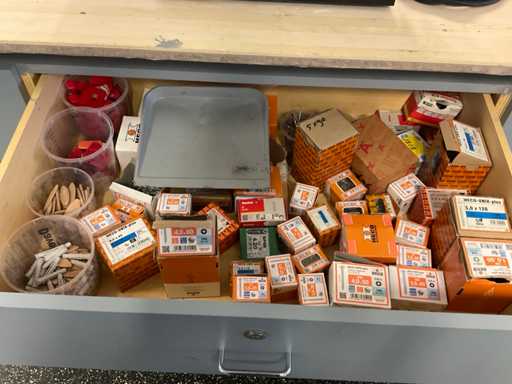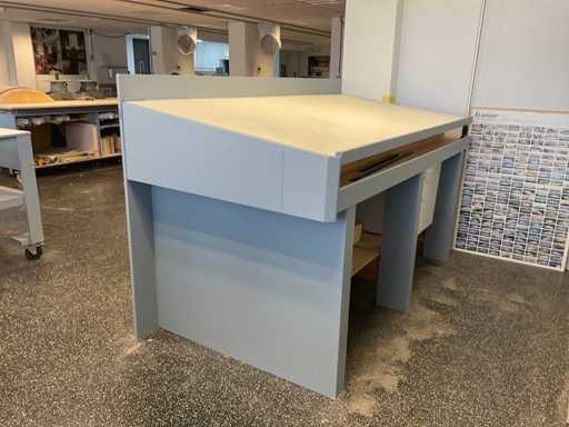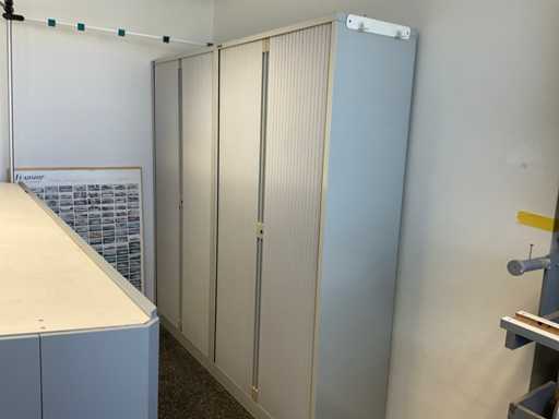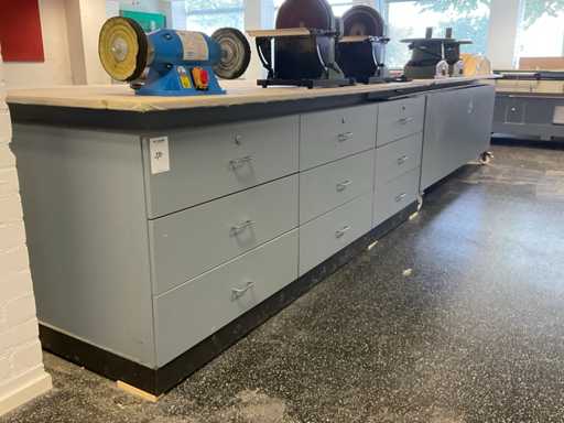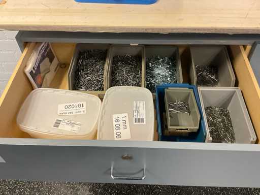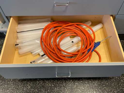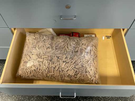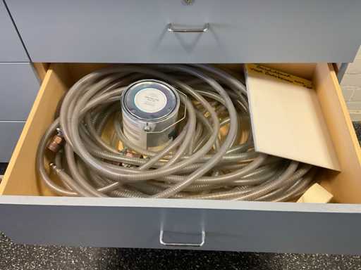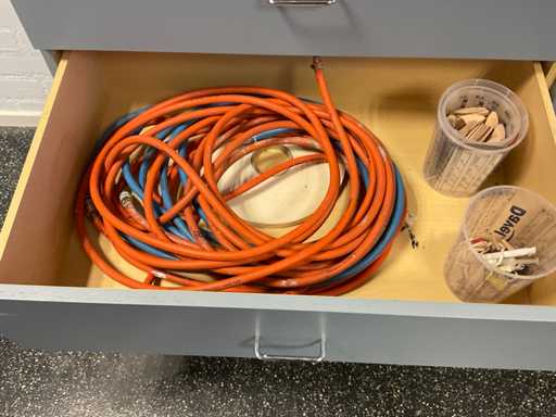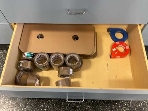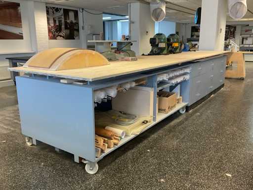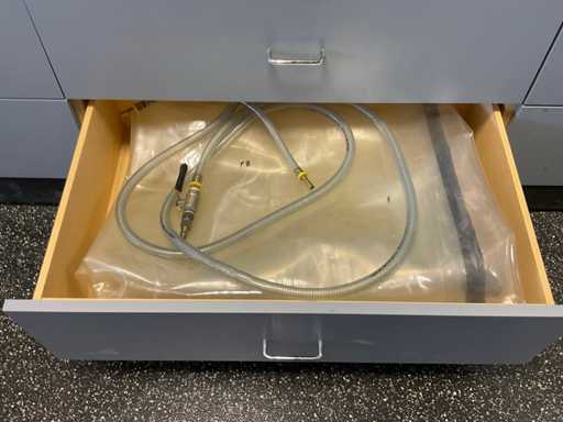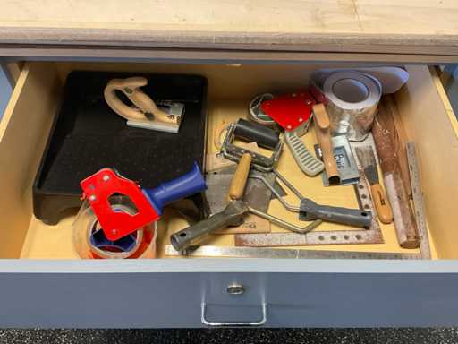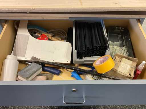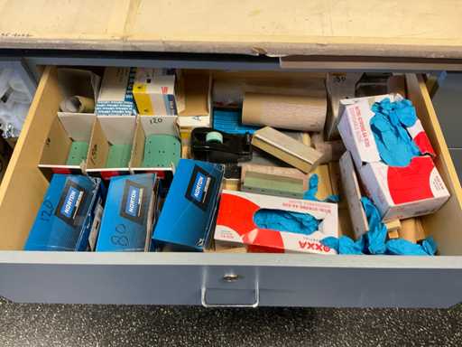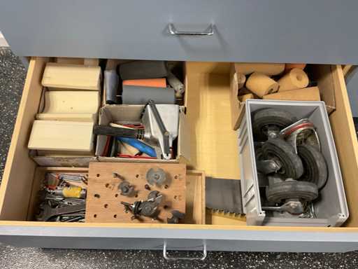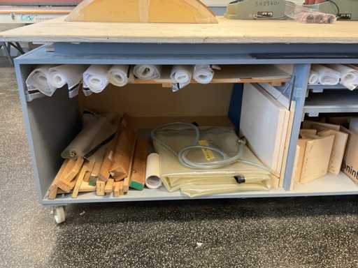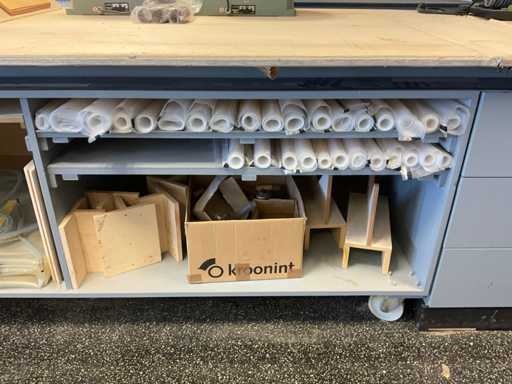 hout; w.o. bevestigingsmaterialen en vacuüm toebehoren; incl. inspectietafel en (2x) archiefkast met inhoud