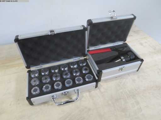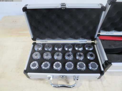 Een doos met 18 collets voor 3, 4, 5, 6, 7, 8, 9, 10, 11, 12, 13, 14,