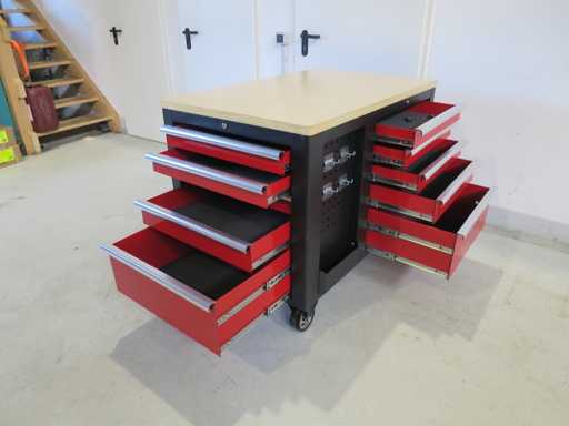 De gereedschapskar is uitgerust met 10 lades en een kast met 2 deuren.