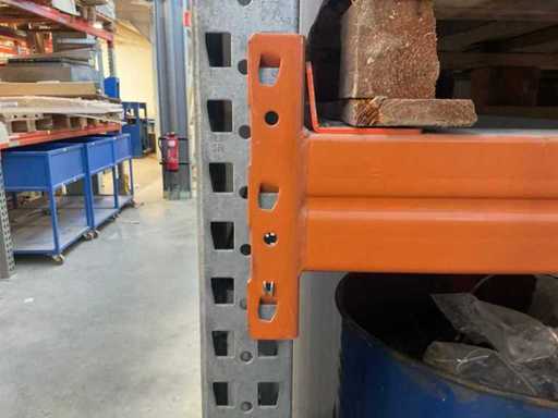 Zware plank bestaande uit: 2 standaards ca. 1100x3300mm, 6 spanten ca. 3600mm, inclusief pallethouders, met inhoud