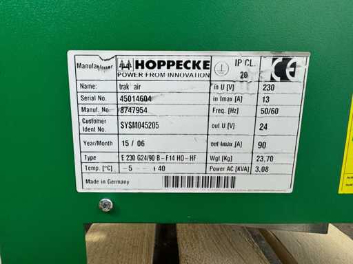 Ładowarka wózka widłowego Hoppecke Trak Air 24V 90A 2015
