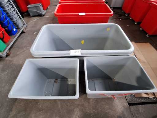 3 mobile environmental boxes grey, 1 x mobile with wheels 1300x700x730 mm, 2 x mobile with wheels 650x450x650 mm
