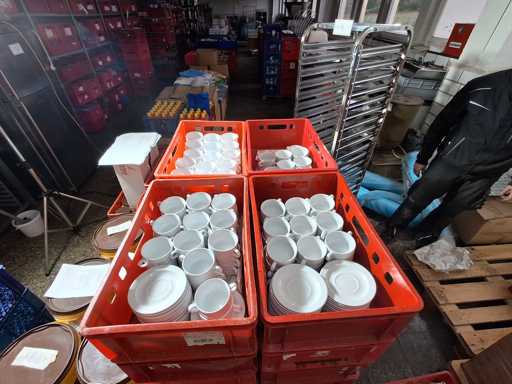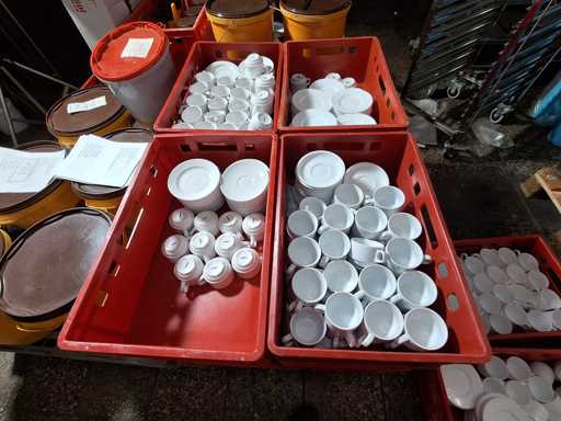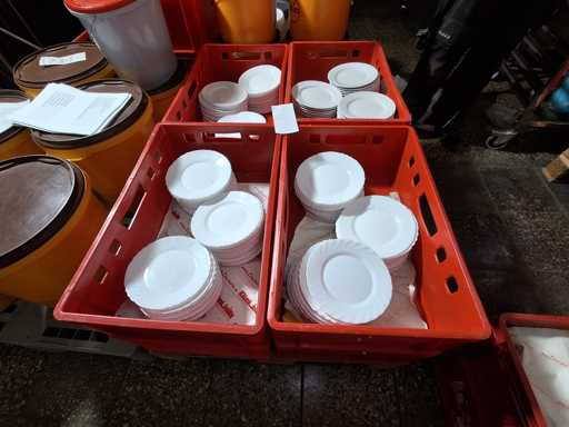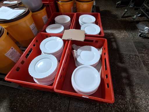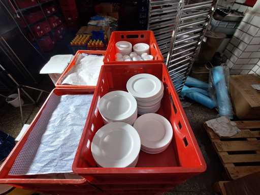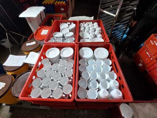Large batch of dishes, plates, saucers, coffee cups and soup bowls in 26 boxes!