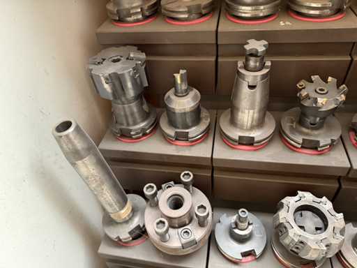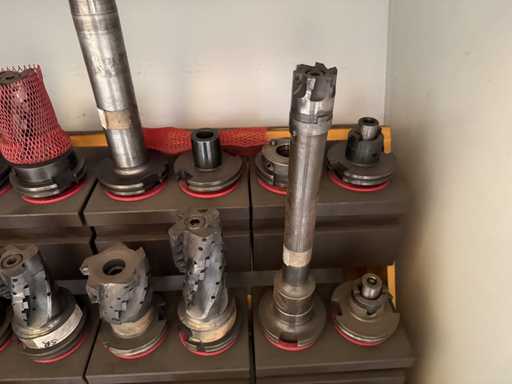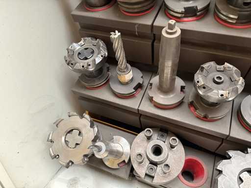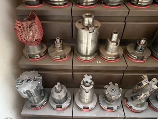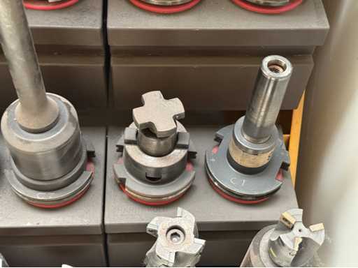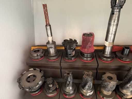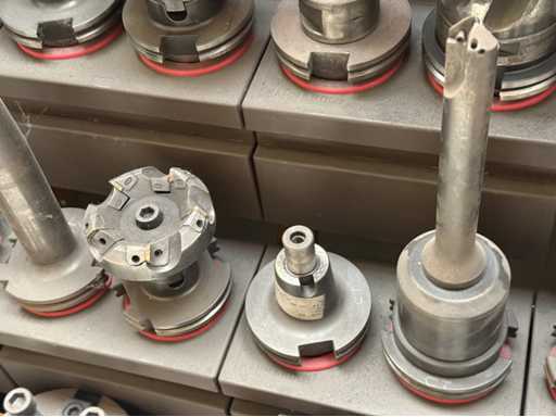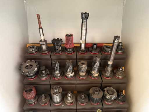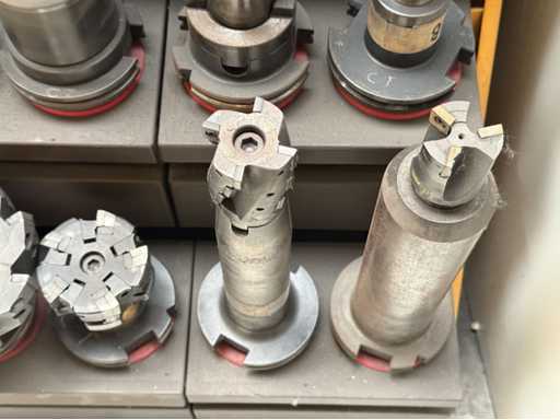 Szafka narzędziowa WTS wyposażona w łącznie 55 uchwytów SK50 z narzędziami o różnych konstrukcjach, szczegóły można znaleźć na zdjęciach tabliczek z nazwą