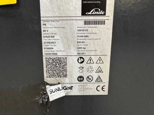 06/2023 Linde 80V 930Ah 6pzs930 Akumulator do wózka widłowego Akumulator Akumulator do wózka widłowego
