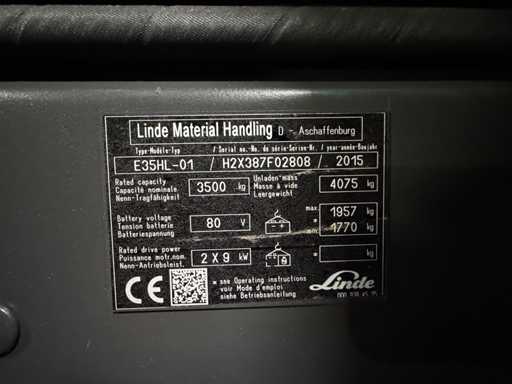 06/2023 Serwis + UVV 11/2026 Linde E35HL 3.500kg 3.+4. Zawór 180cm Elektryczny wózek widłowy 8.839 godzin