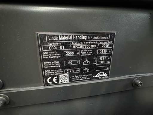 09/2021 Serwis+UVV 10/2026 Linde E30 Triplex 513cm 3. +4. zaworowy Regulator widelca Elektryczny wózek widłowy 5.255 godzin