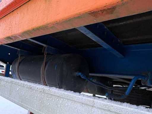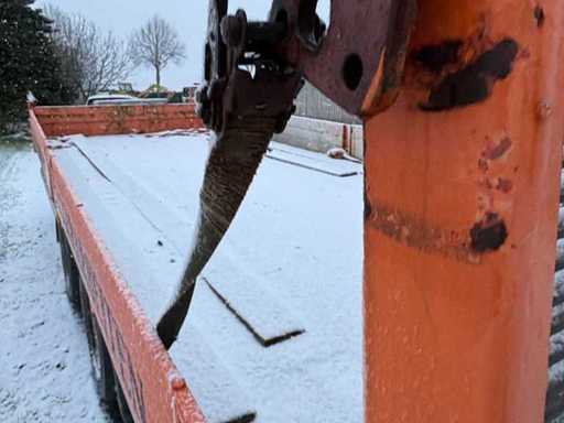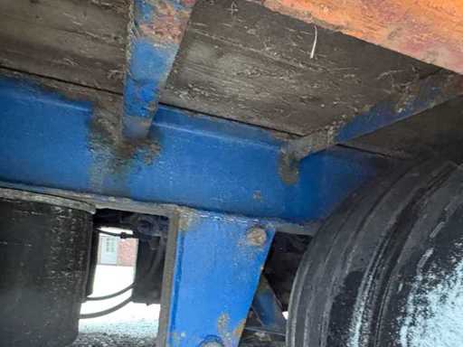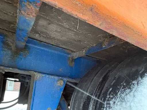 The low-loader is overall in a well-tidy and well-maintained condition. The floor has no holes and makes a stable and resilient impression. The loading area is solidly designed and suitable for the tough everyday life on the construction site. The frame, axles and body look robust and ready for use.