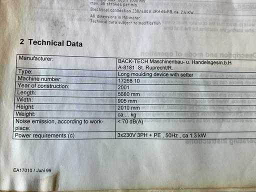 2001 Backtech Mono-star Long Roll and Outlet Machine