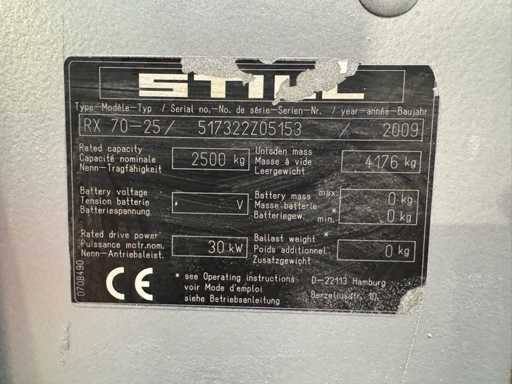2009 UVV 11/2025 Wciąż RX70-25 2,500 kg diesel wózek widdłowy 3,+4. Zawór 11,645 godzin.