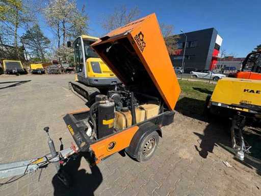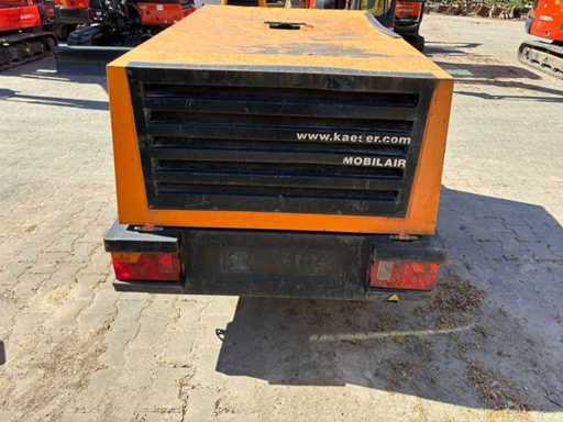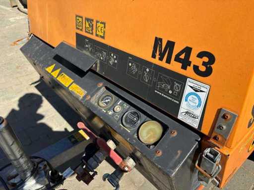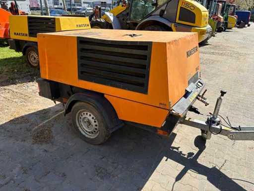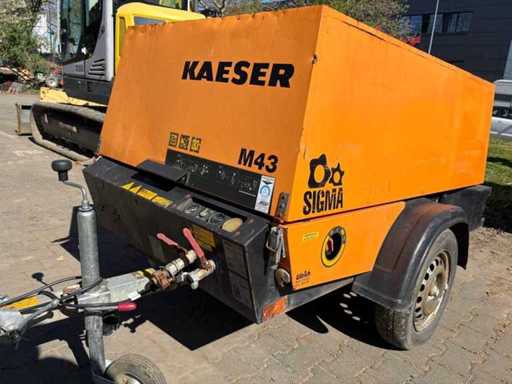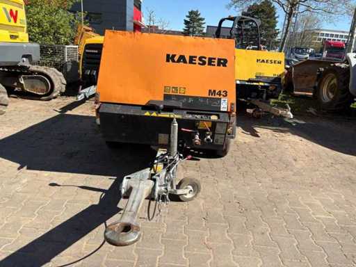 Mobile portable compressor Kaeser M43 from 2010 with approx. 9,078 operating hours. Robust and compact design on chassis with ball coupling. Ideal for construction sites, pneumatic tools and sandblasting.