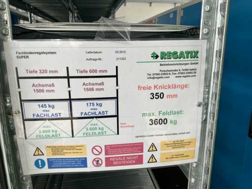 24 półki 600 x 1506 mm, obciążenie półki 175 kg