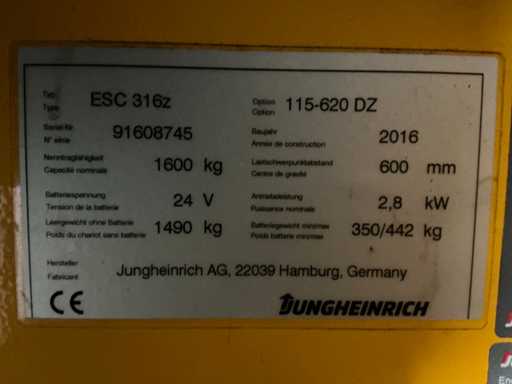 2016 JUNGHEINRICH ESC 316z wózek widłowy