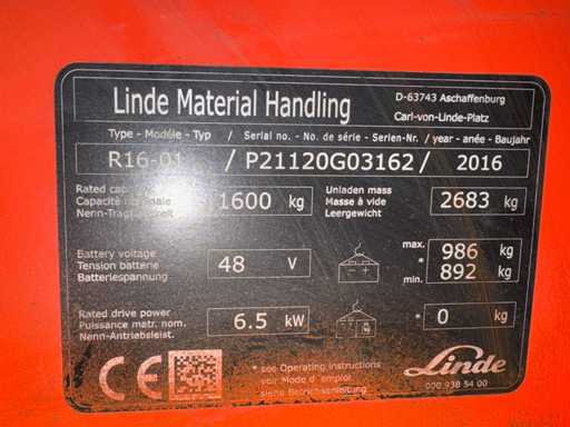 2016 Serwis+UVV 10/2026 Linde R16 Triplex 796cm Reach Truck Fork Adjuster Electric Fork Adjuster