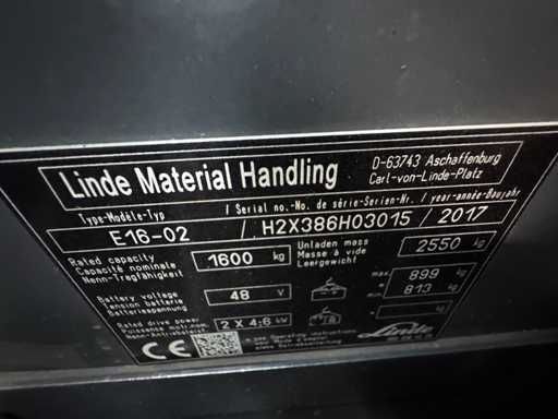2017 Serwis+UVV 11/2026 Linde E16 1 600 kg Triplex 3. + 4. zawór elektryczny wózek widłowy 3 379 godzin