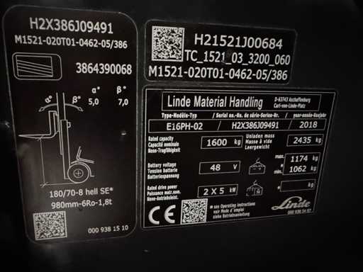 2018 Serwis + UVV 11/2026 Linde E16PH EVO Triplex 3rd + 4th valve 152cm regulatory widelec elektryczny 3934 godziny