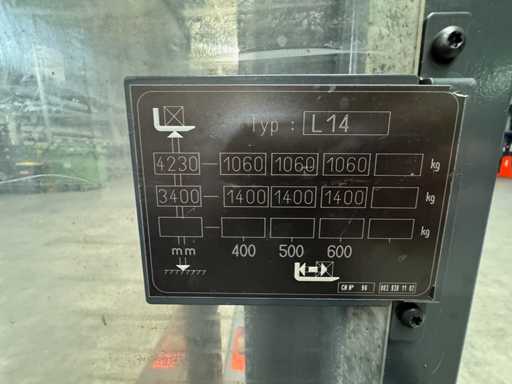 2018 Serwis +UVV 09/2026 Linde L14 Litowy wózek paletowy litowo-jonowy 1.400 kg Ant 2.942 godziny
