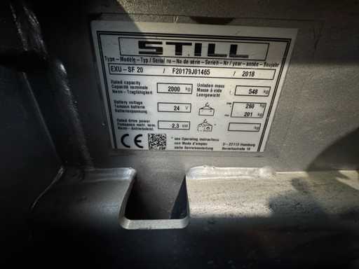 2018 Wciąż EXU20-SF 2.000 kg Paletowy wózek Ant Stacker Początkowy ruch 1.812 godz.