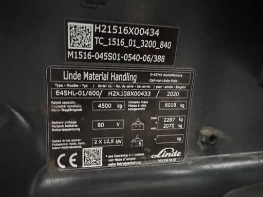 2020 Linde E45HL EVO 4.500kg 3.+4 zaworowy elektryczny wózek widłowy E45 E50