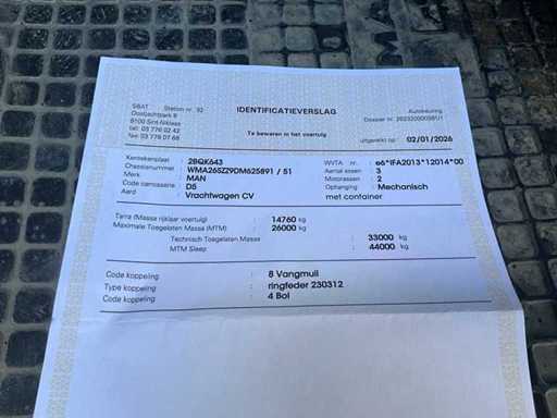 Payload kg: 26000 (GVW) — or the difference GVW tare = 11240 kg