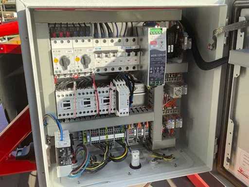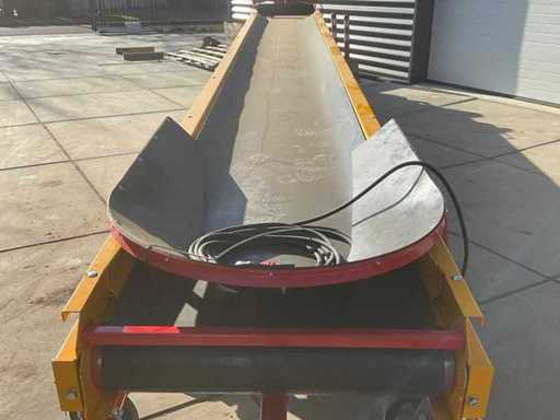 Długość pasów: (2x) 8,000 mm, szerokość pasa: 800 mm, podparcie pasa: specjalna rowina, podparcie: rolki nośne, φ 50 mm, długość schowana: 9,080 mm, długość wydłużona: 15,800 mm, wysokość włożenia: 750 - 1,180 mm, wysokość wystrzału: 800 - 1,200 mm.