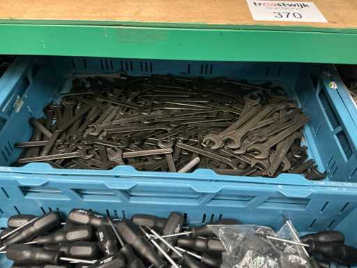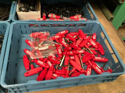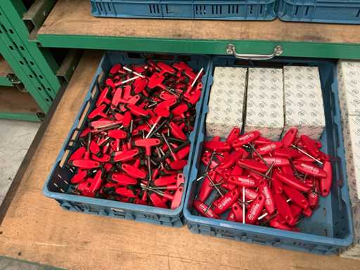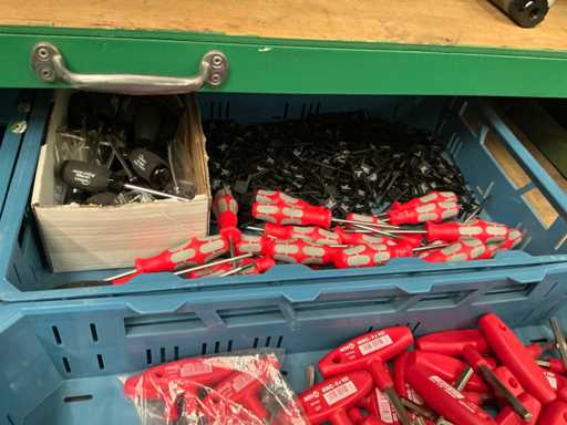 Zawiera to: klucze T-sześciokątne oraz kilka kluczy do widelec/ nieużywane/ w tym koszyki do układania/ zawartość 2 szuflad