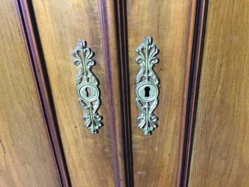 Vertiko to specyficzny typ wysokiej, wąskiej szafki, która była popularna pod koniec XIX wieku. Jest to typowy przykład okresu historyzmu, często charakteryzującego się połączeniem różnych historycznych stylów architektonicznych. Szafka wykonana jest z orzecha, co nadaje bogaty wygląd. Te meble słyną z funkcjonalności i szczegółowego wykończenia, często wykorzystywane jako ozdoba wnętrz.