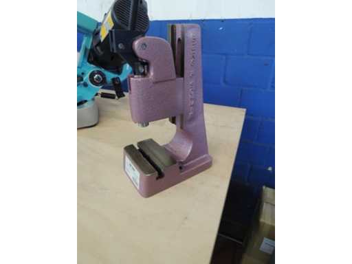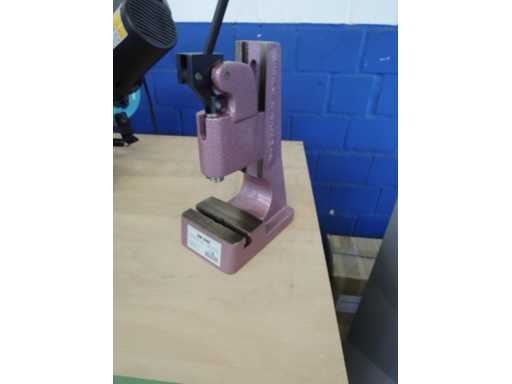 Prasa toggle>br>• Wysokość pracy regulowana przez po prostu poluzowanie śrub zaciskowych na podstawce>br>• Precyzyjna regulacja wysokości roboczej przy HK 800 = milimetrowa precyzyjna regulacja >br> do pożądanej wysokości roboczej. Precyzyjna regulacja jest >br> obowiązkowa w obu kierunkach za pomocą gwintowanego wrzeciona>br>• dźwigni ręcznej ułożonej w przyjazny sposób >br>ciśnieniu, ciśnienie sprężynybrciśnienie 500 kN>br>ciąg 40 mm>br>wysunięcie 73 mm>br>wysokość robocza do 60 - 150 mm>br>powierzchnia stołu 115 x 70 mm>br>waga maszyny ok. 10 kg >br>stan: nigdy nie używana / nowa (5)