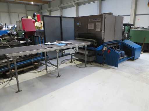 Maszyna do odręczania bruków do blachy>br> - panel dotykowy ESA>br> - w tym separator turbo>br> włącznie ze stołem podawczym 3 m>br> >br> - dokumentacja>BR>szerokość obrabianego elementu 900 mm>br>wysokość obrabianego przedmiotu - maks. 40 mm>br>prędkość posuwu mm/min>br>długość obrabianego elementu 0 mm>BR>sterowanie>br> całkowite zapotrzebowanie mocy 35 kW>br>ciężar maszyny ok. 3,7 kg>br>wymiary LxWxH 6,0 x 2,35 x 2,2