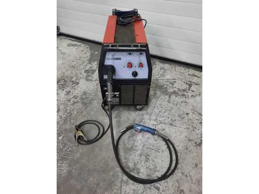 Spawarka Bravo 165 Combi jest w dobrym stanie i kompletna, jak pokazano na zdjęciach. Maszyna jest natychmiast gotowa do użycia. Dzięki maksymalnemu prądowi spawania wynoszącemu 165 amperów przy napięciu 230 V jest to idealne rozwiązanie dla mniejszego garażu lub profesjonalnego majsterkowicza. Wyposażony w przełącznik sterowany krokowo ze zintegrowaną funkcją włączania/wyłączania do ustawiania napięcia spawania na 7 poziomach, bezstopniową regulację prędkości drutu oraz 2-rolkowy podajnik drutu, który bez wysiłku transportuje drut spawalniczy na maksymalną długość 4 metrów. Ponadto maszyna posiada ogranicznik czasu spawania dla optymalnej kontroli i jest wyposażona w złącze Euro do palnika spawalniczego, dzięki czemu można je łatwo i szybko wymienić. Pod względem technicznym, optycznym i ogólnym urządzenie jest w dobrym stanie i dlatego można z niego korzystać od razu.