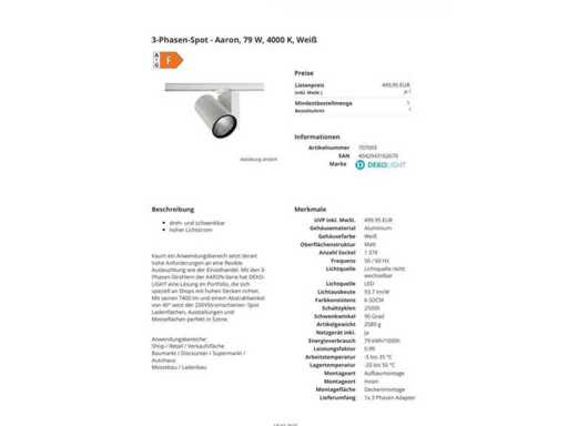 Dekolight 3-fazowy spot - Aaron, 79 W, 4000 K, biały (20x)