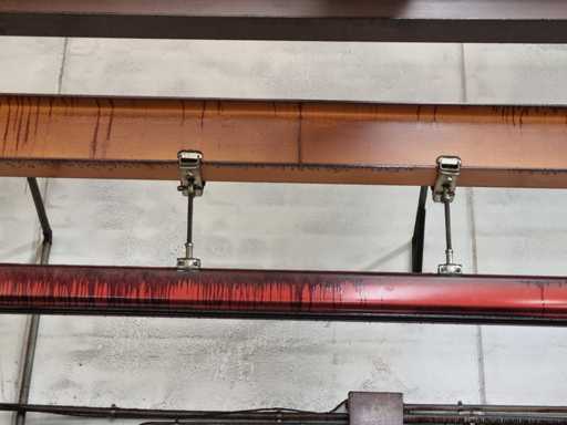 - Konstrukcja (kolor czerwony) składa się z 2 szyn z szyną jezdną o długości ok. 6100 mm oraz podwozia jezdnego wyposażonego w wciągnik o długości ok. 6000 mm.