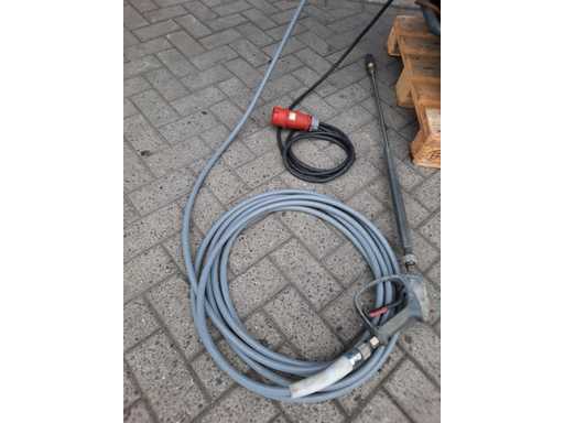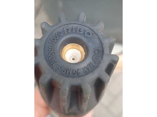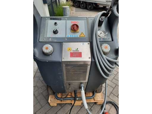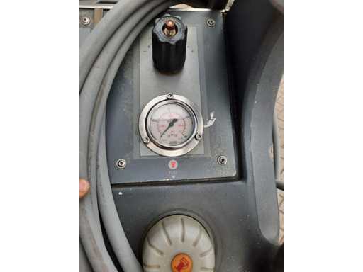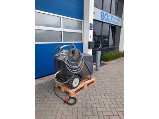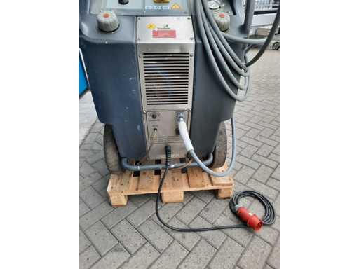 Przemysłowa myjka wysokociśnieniowa/myjka parowa DIBO IBH-M 220/16 jest w stanie używanym i kompletna, jak pokazano na zdjęciach. Maszyna jest natychmiast gotowa do użycia. Wyposażony w wydajność 220 bar i 16 litrów na minutę, zasilany napięciem 380 woltów, w tym 10 metrów nowego oryginalnego węża i głowicy frezującej. Uwaga: urządzenie doskonale działa na zimnej wodzie, ale pali się przy użyciu gorącej wody, prawdopodobnie dlatego, że nie było używane przez długi czas.