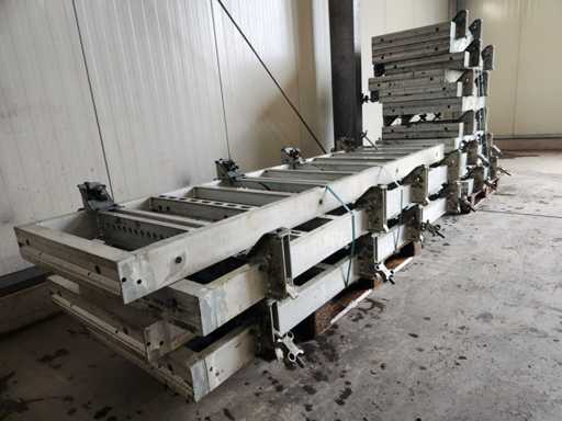 Doka column formwork complete – 15 elements in three sizes – Aluminium formwork system for concrete columns For sale is a complete set of Doka column formwork elements made of robust aluminium frame with integrated formwork lining. The system is used, technically fully operational and can be used immediately on the construction site. Ideally suited for building construction, concrete supports, foundation work or temporary concrete forms. ✅ Technical details: • Manufacturer: Doka (original system) • Elements: 15 pieces in total • 7 × 0.90 m × 0.71 m • 4 × 1.20 m × 0.71 m • 4 × 2.70 m × 0.71 m • Material: Aluminum frame, galvanized / painted • Condition: used, ready for use, with typical concrete residues • Includes fasteners and turnbuckles • Loading with forklift possible The Doka system stands for precise shaping, high stability and a long service life. Perfect for professional construction companies, scaffolders and concrete workers.