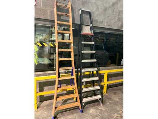 Składa się z drewnianej drabiny składanej z 24 szczeblami +1x aluminiowej drabiny składanej z 8 stopniami