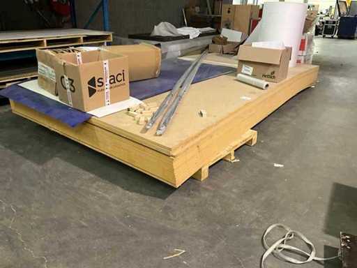 Składa się z około 16 arkuszy MDF o wymiarach 2243x4605x18 mm, + około 24 arkuszy fornirów z płyty włókniowej o wymiarach 2800x2070x18 mm