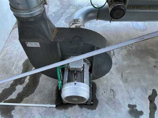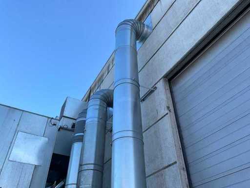 Wyposażony w 4x turbiny ekstrakcyjne 1x 4 kW + 2x 11 kW + 1x 15 kW, wąż do podłączenia kontenera, + dużą partię luźnych rur i węży wyciągowych, podłączone rury na zewnątrz, w tym przejście do ściany!!