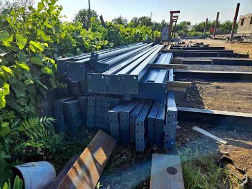 Konstrukcja składa się z 2 belek (kratownic) na końcach wykonanych z profilu IPE 160; 5 belek pośrednich (kratownic) z profilu IPE 200; 4 kolumny końcowe z profilu IPE 160; 10 kolumn pośrednich z profilu IPE 200; 4 kolumny drzwiowe z rury kwadratowej 100x100x4; 6 słupów ciśnieniowych z rury 76x4; wzmocnienia wiatrowe dla belek i kolumn wykonanych ze stali ocynkowanej z napinaczem 16 mm;