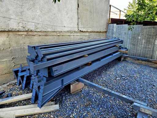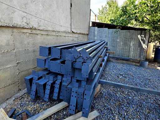 Konstrukcja składa się z: 2 belek (kratownic) na końcach z profilu IPE 160; 4 belki pośrednie (kratownice) z profilu IPE 200; 4 końcowe posty z profilu IPE 160; 8 stanowisk pośrednich z profilu IPE 200; 3 słupki drzwiowe z rury kwadratowej 100x100x4; 5 pionów ciśnieniowych z rury 76x4; wzmocnienia wiatrowe dla belek i słupów wykonanych ze stali ocynkowanej z napinaczem 16 mm;