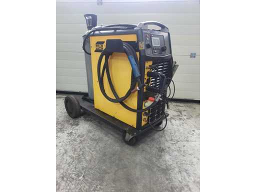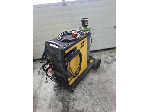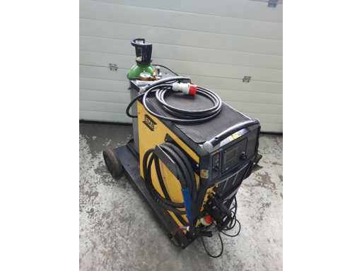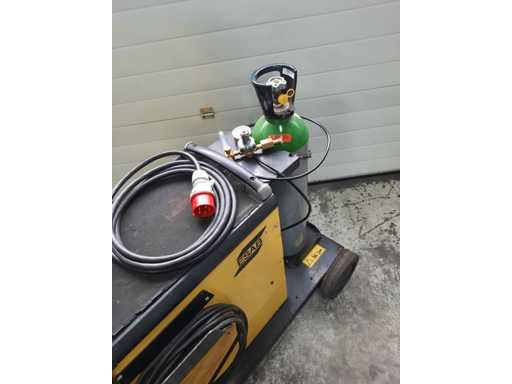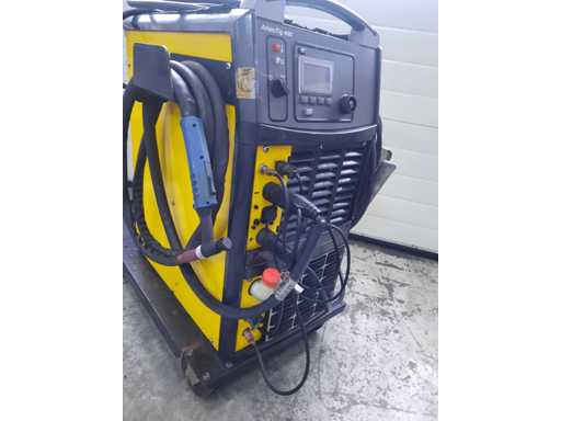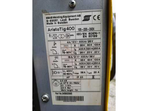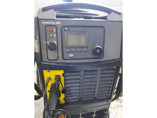 Spawarka TIG ESAB Aristo TIG400 (T6) chłodzona wodą jest w dobrym stanie i kompletna, jak pokazano na zdjęciach. Urządzenie jest już zdemontowane i od razu gotowe do użycia. Wyposażony w 4-metrowy palnik spawalniczy, zawór redukcyjny i chłodzenie wodne, odpowiedni do spawania stali, stali nierdzewnej i żeliwa. Zasilany napięciem 380 woltów. Pod względem technicznym, optycznym i ogólnym urządzenie jest w dobrym stanie i dlatego można z niego korzystać od razu.