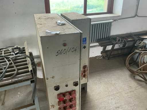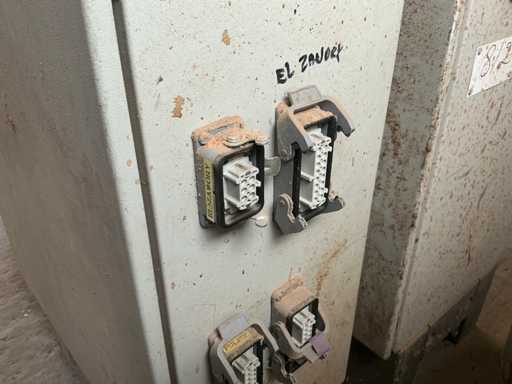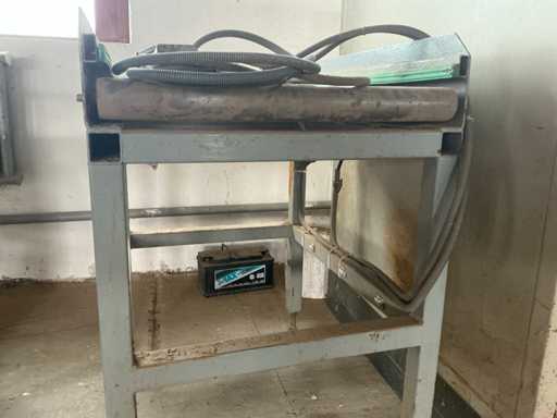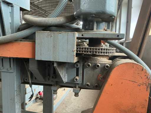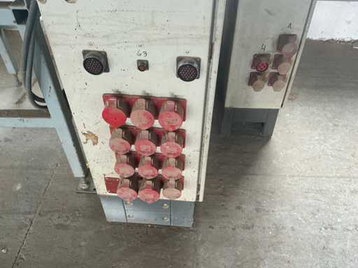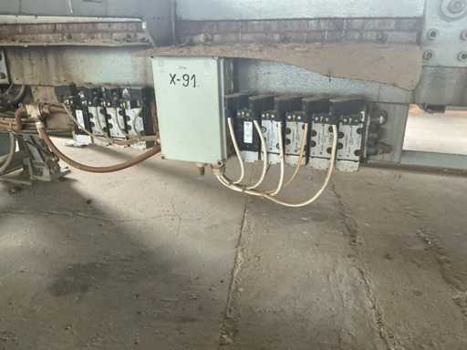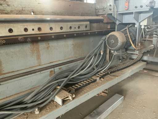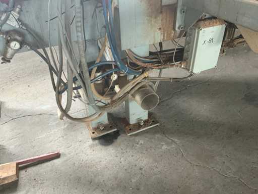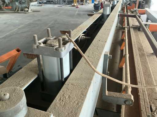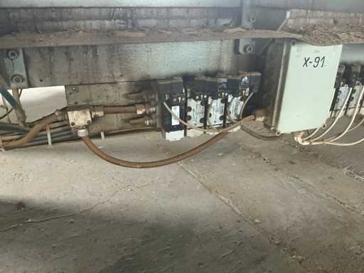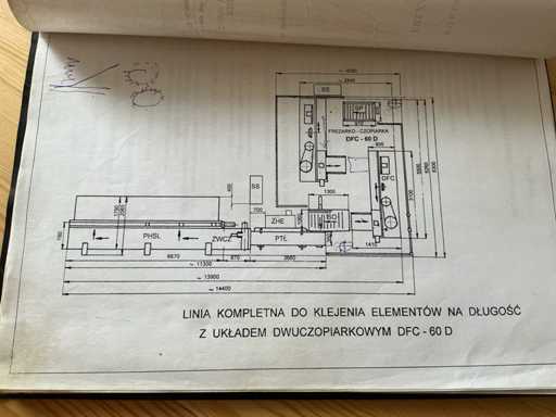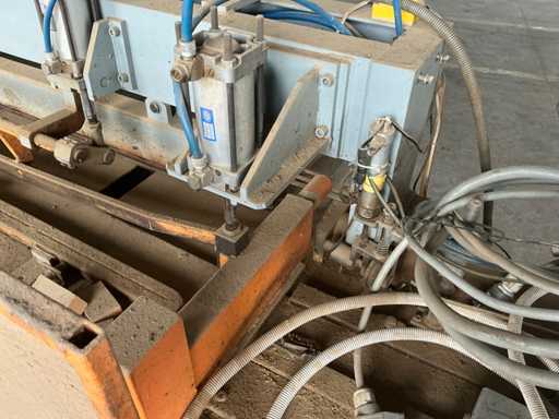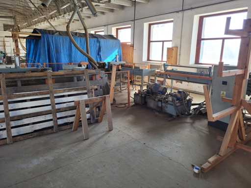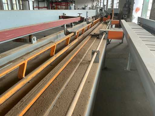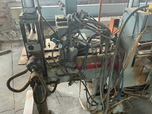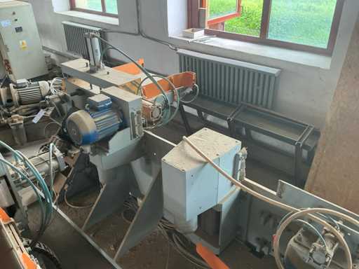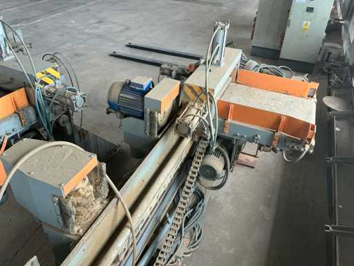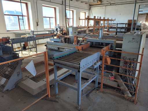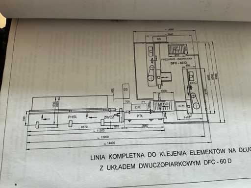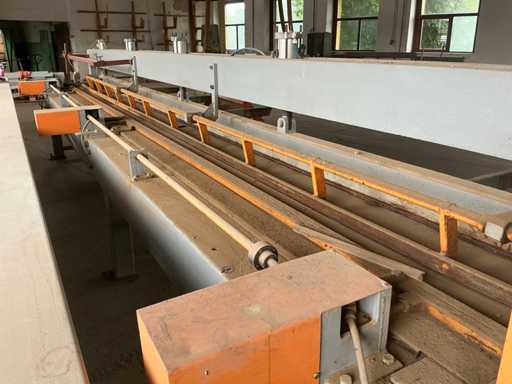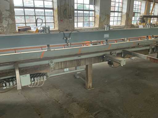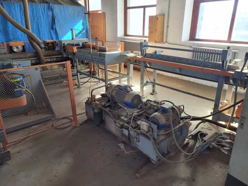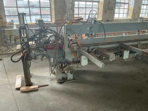 Prasa PHSL do łączenia odcinków, stół podający, magazyn załadowczy, stół buforowy i stół kątowy.