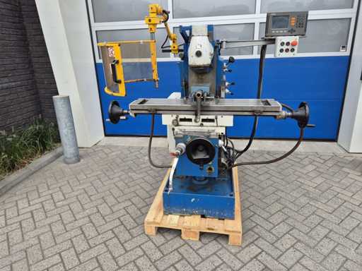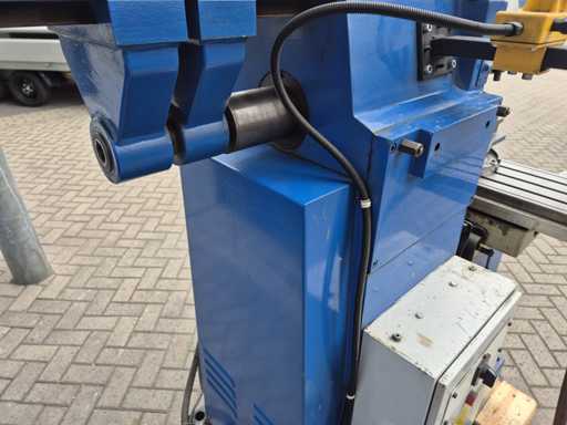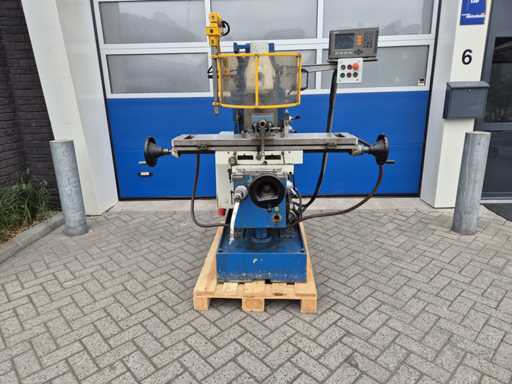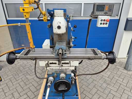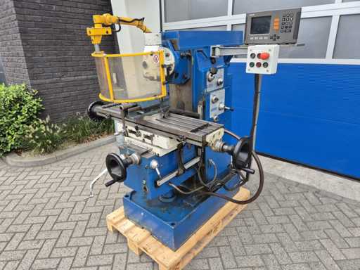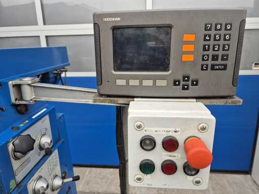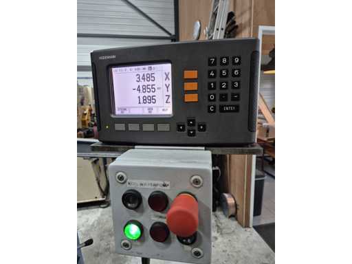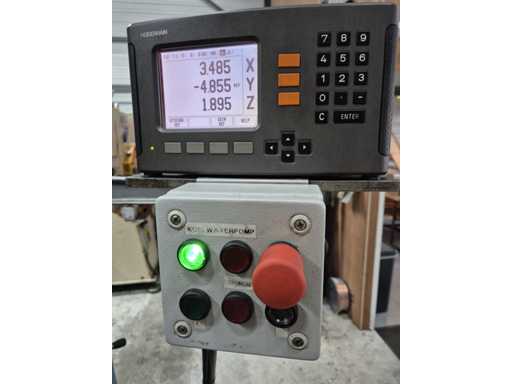 Frezarka uniwersalna FEXAC FB-2 z zaciskiem maszynowym, dobrze używana i doskonale nadająca się do różnorodnej obróbki metali. Maszyna pracuje na napięciu 380V, posiada wlot ISO 40, rozmiar stołu 1100 x 240 mm i rowki teowe 14 mm. Prędkość obrotowa waha się od 48 do 1500 obr./min, a odczyt odbywa się za pomocą HEIDENHAIN na osiach X, Y i Z. Zasilacz występuje na osi Y i Z, natomiast oś X pracuje ręcznie po lewej i prawej stronie. Dodatkowo frezarka wyposażona jest w pompę chłodzącą. Stan jest taki, jak pokazano na zdjęciach.