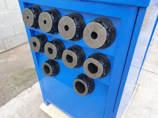 Prasa hydrauliczna do zaciskania hydraulicznych rur, wyposażona we wszystkie niezbędne matryce do rur od 0,5 do 50 mm, nigdy nie zużywała 0 godzin i była pakowana w