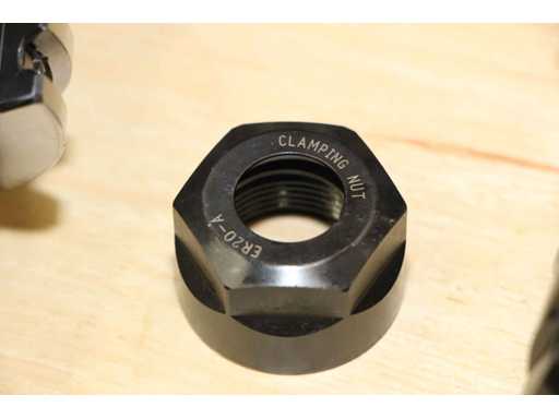 4 JEDNOSTKI/ZESTAWY ATT0023 UPAKOWANE RAZEM. POJEDYNCZY ATT0023 ODPOWIADA: UCHWYTOWI NARZĘDZI SK40-ER20-100. DIN69871, G2.5 25000 obr./min. Mata: 20CrMnTi 0 003. Set 5 postaci